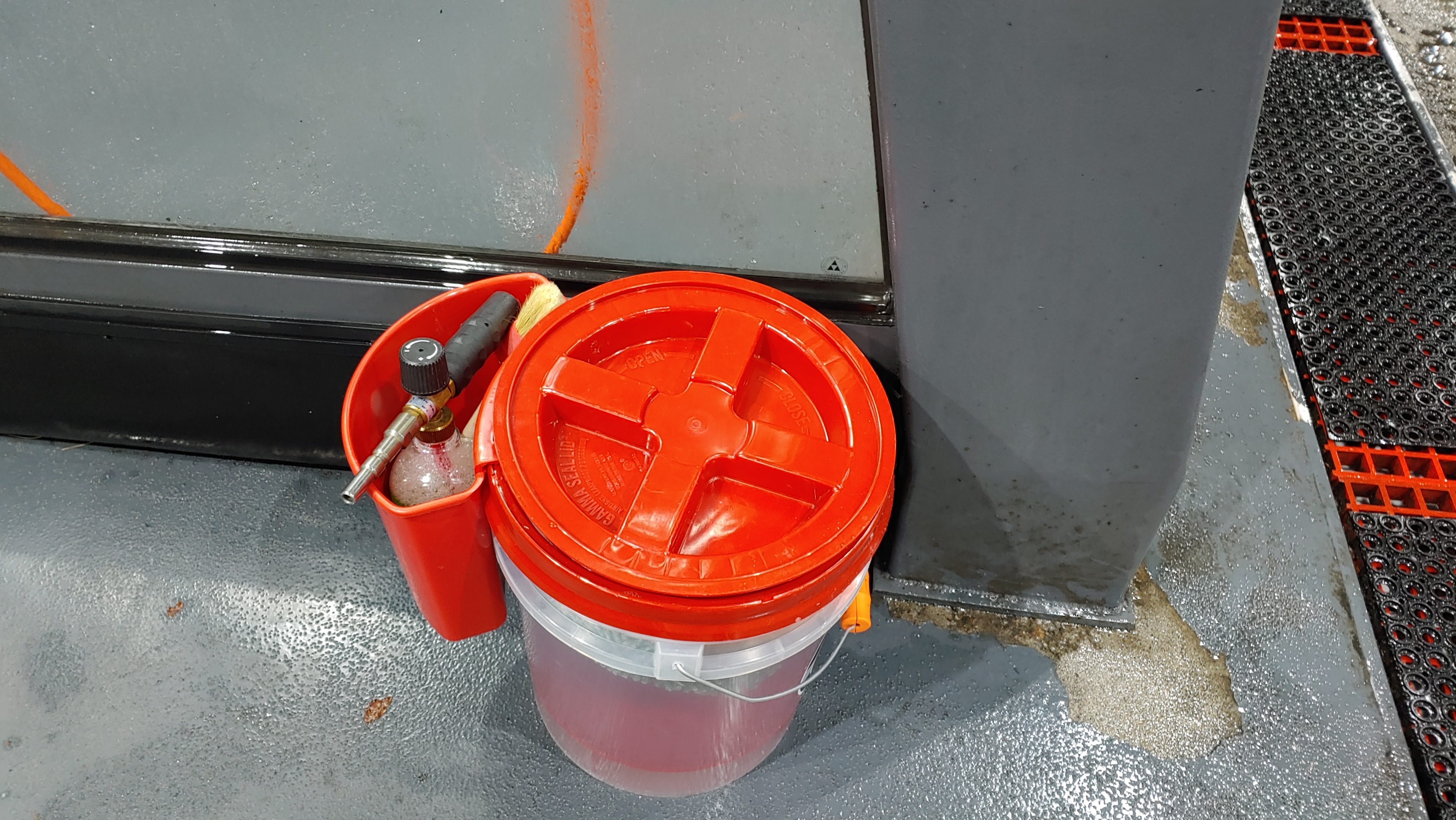 미트질 하기 전 고압수로 하부까지 꼼꼼하게 뿌리고 버킷 세차 가장 마지막에 해요.