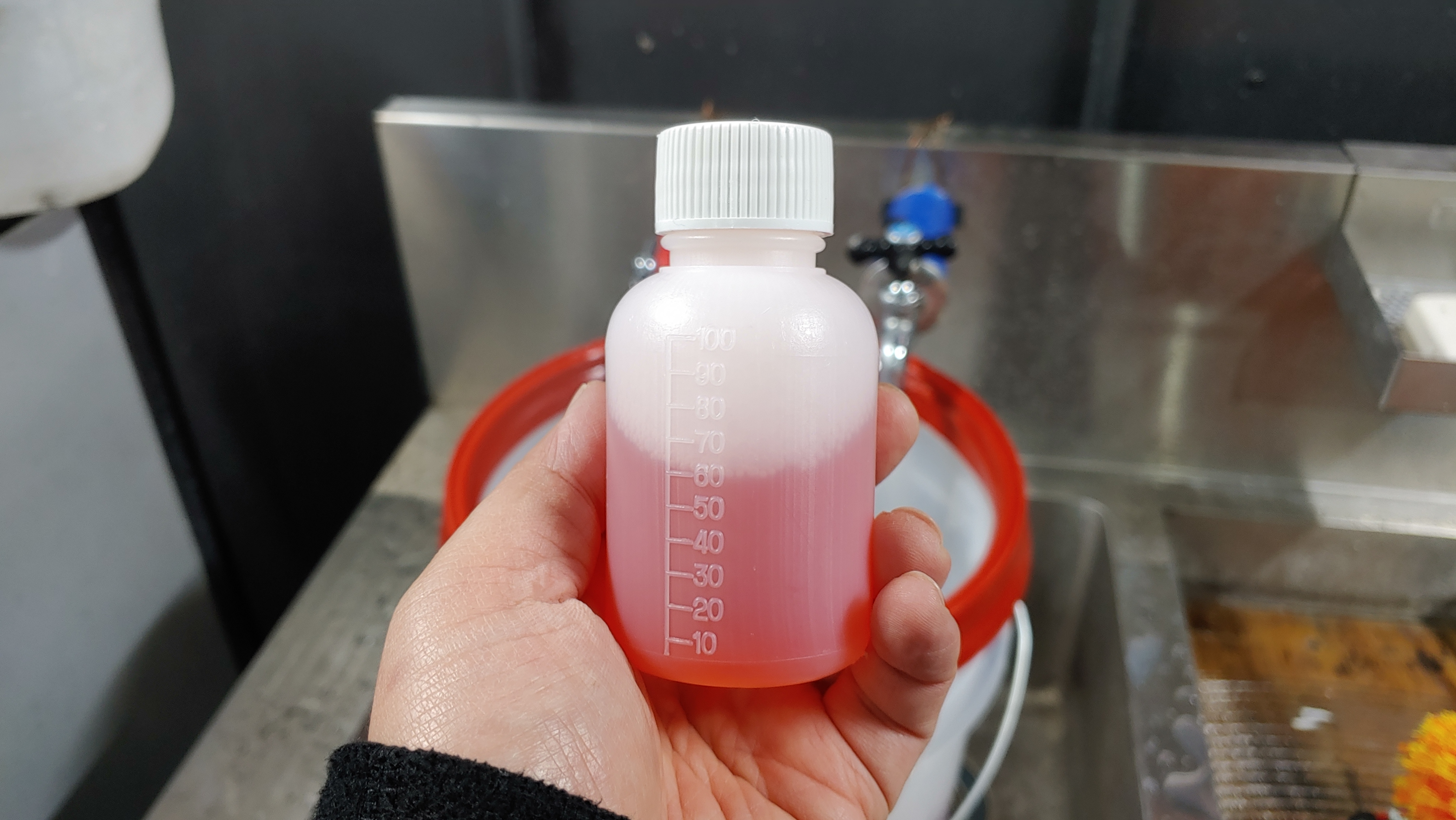 저는 20L짜리 버킷이니까 10 L에 중간값인 7~8ml 생각해서 15ml 가지고 왔어요 ㅎㅎ