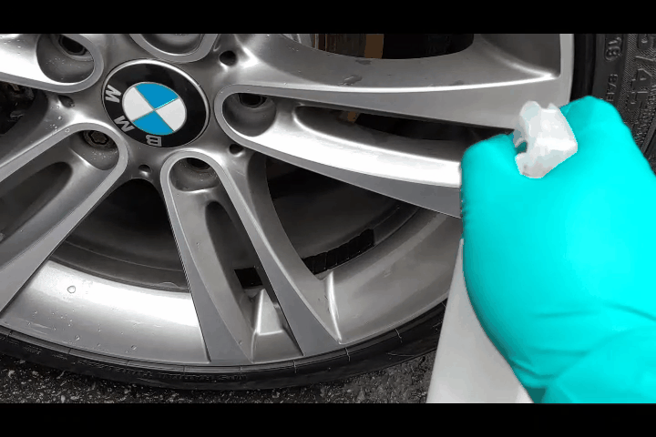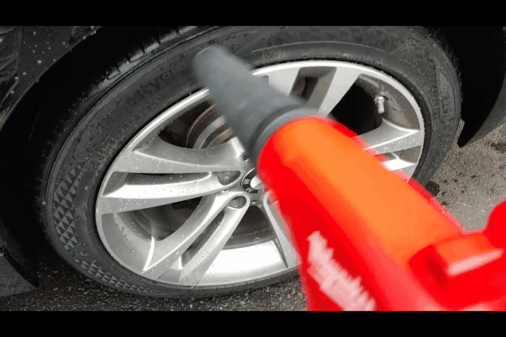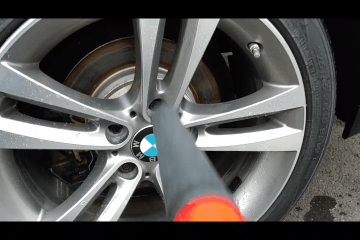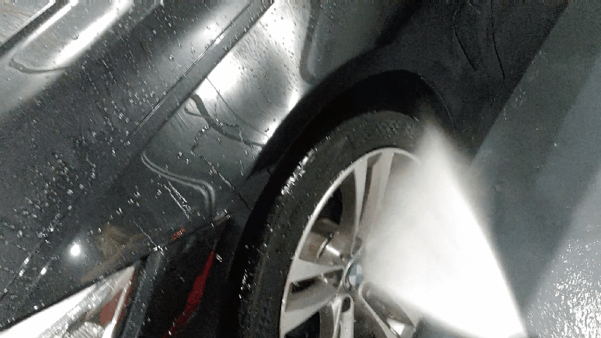 폼랜스 뿌리기 전 고압수 기본시간이 좀 남아 휠과 타이어, 휠 하우스를 고압수만으로 세척합니다.