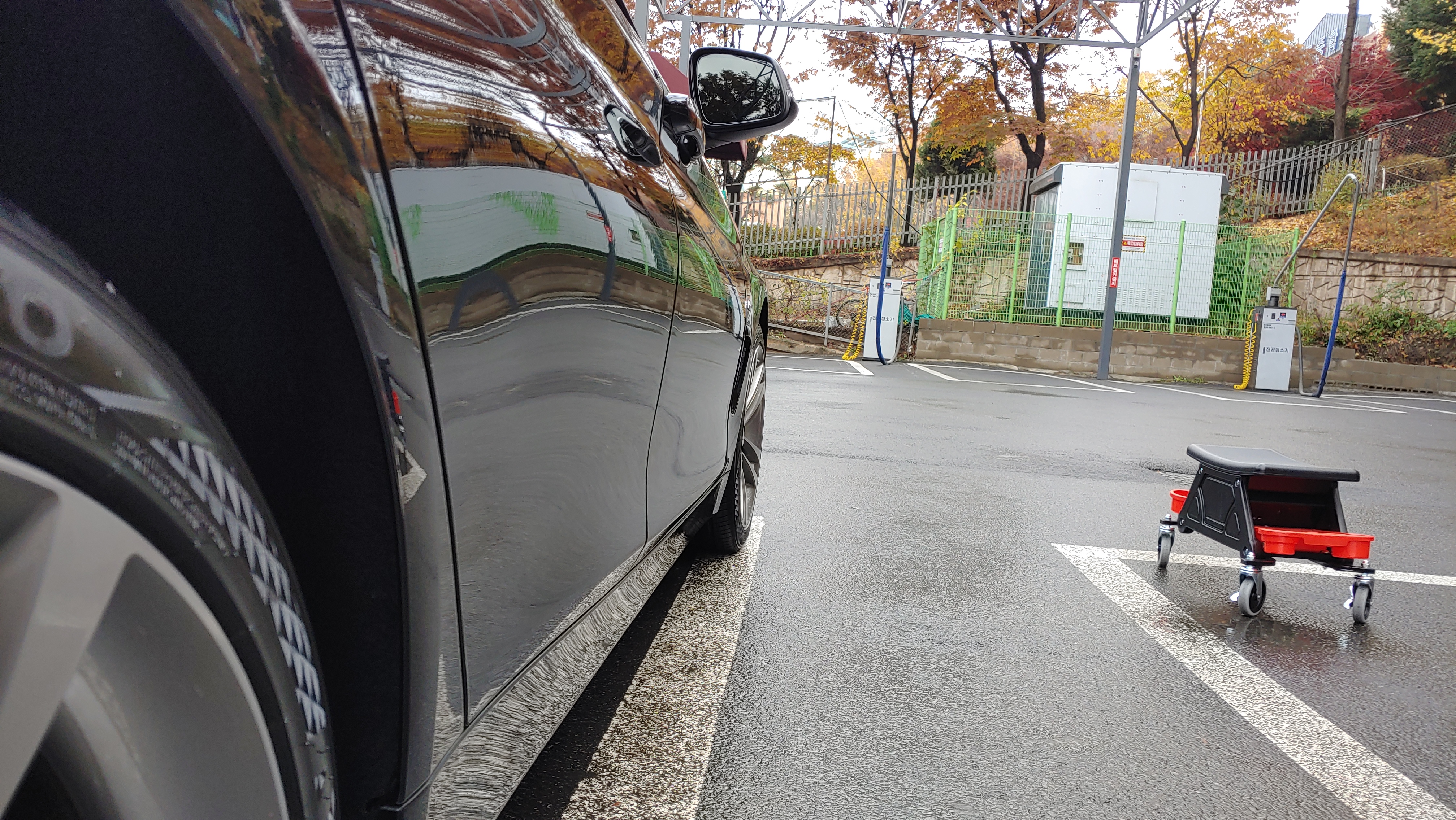 LSP 하고 마지막 세차장 떠나기 전에 타이어 드레싱이 도장면에 튈 수 도 있어서 타이어 한번 더 닦아 주고 버려요