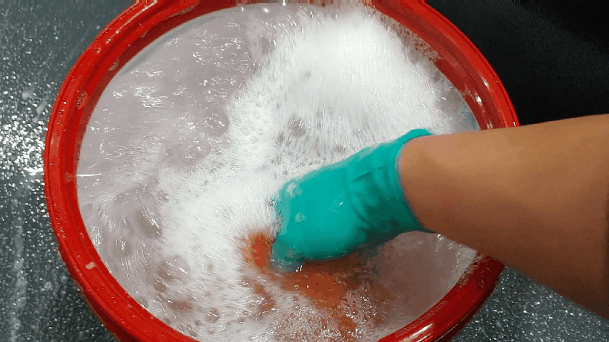 버킷에서 워시 패드를 휘적휘적