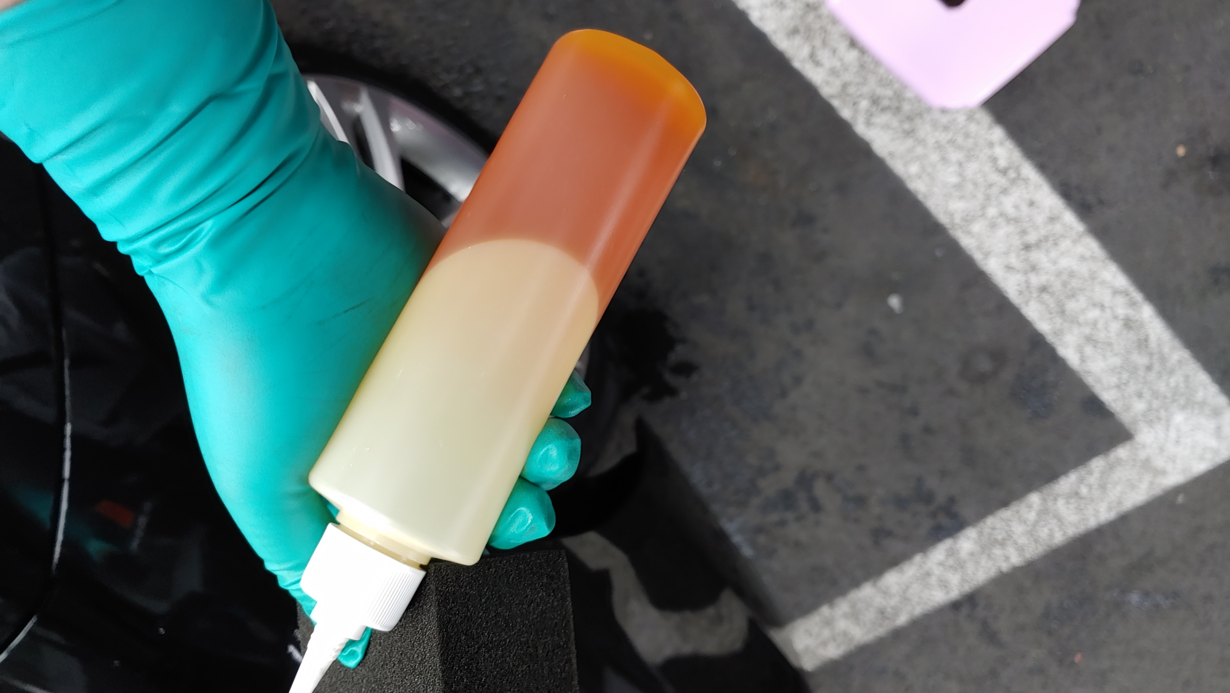 최근 주력으로 쓰고 있는 타이어 드레싱인 케미컬가이 V7 타이어샤인 제품인데 묽은데 오일리하고 발림성 좋고 20분정도 후에는 타이어에 흡수되어 검고 매트해집니다.