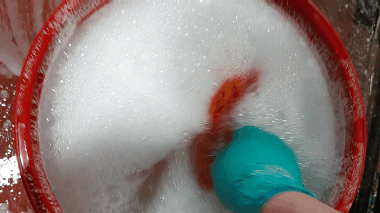 고압수 안뿌리고 폼 위에 버킷 세차를 합니다.