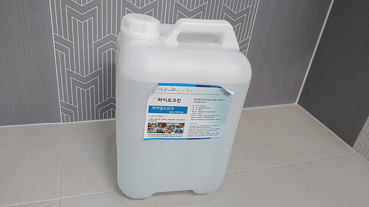 이곳 저곳에 뿌릴 소독약으로 차아염소산수 20L도 구매했어요